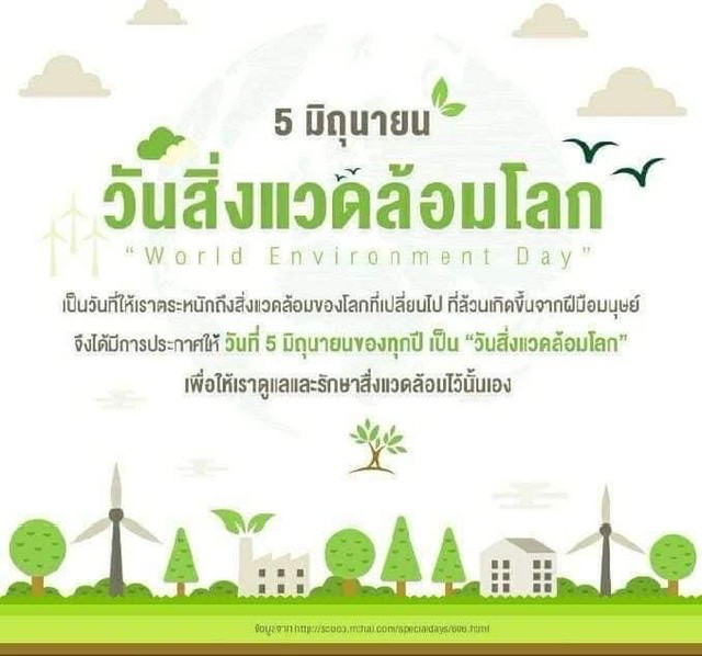 วันที่ 5 มิถุนายน 2565 ในวันที่ 5 มิถุนายนของทุกปีนั้น เป็นวันสิ่งแวดล้อมโลก ซึ่งเป็นวันที่เราควรจะทำอะไรสักอย่างเพื่อสภาพแวดล้อมของเราที่ย่ำแย่ลงทุกวัน สังเกตได้จากปรากฏการณ์ต่าง ๆ ทั้งหิมะขั้วโลกเหนือละลาย น้ำท่วม แผ่นดินไหว หรืออากาศร้อนขึ้น ซึ