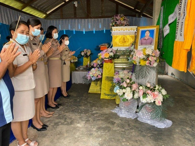 วันที่ 6 มิถุนายน 2565 นางสาวปฐมาพร บัวมาศ ผู้อำนวยการโรงเรียนบ้านเขาโอนและข้าราชการครู ร่วมวางพวงหรีดเพื่อไว้อาลัย นางสาวธัญชนก ดำทอง (หนูนิน)